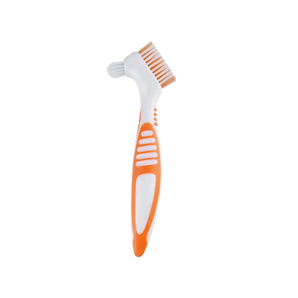 Its dual-headed design provides versatility—one side features a larger brush head for cleaning broad denture surfaces, while the smaller, precision brush head reaches tight spaces and intricate areas. The non-slip, ergonomic handle offers a firm grip, allowing for precise and comfortable cleaning without strain.