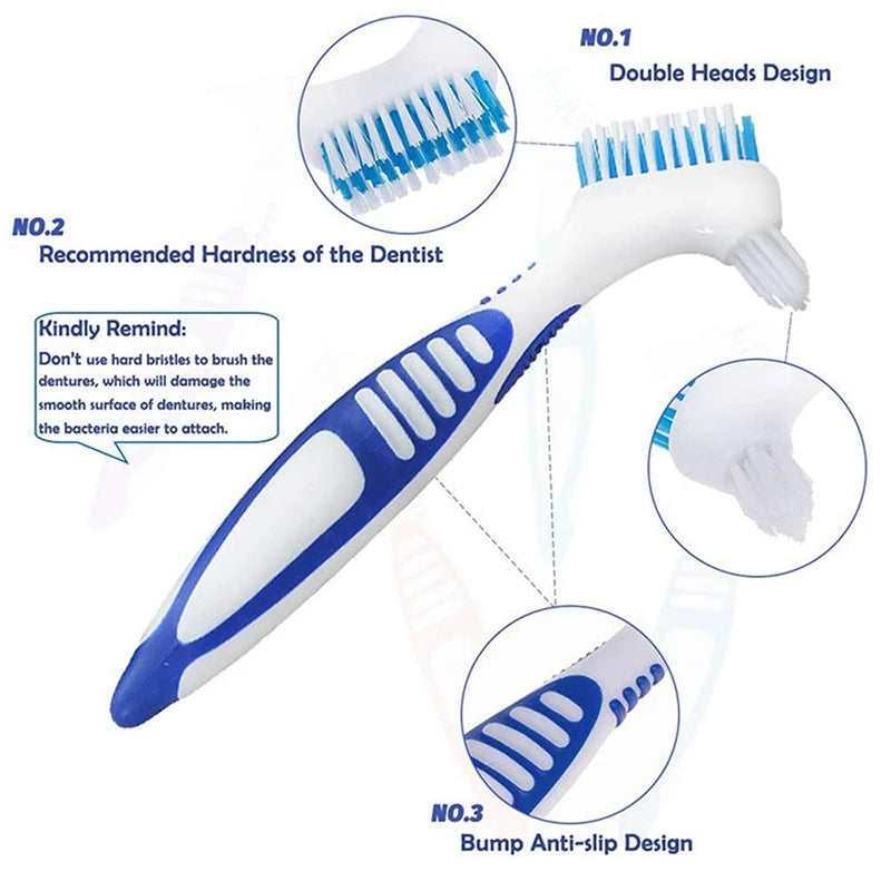 NEW DENTURE CLEANING BRUSH: DUAL HEADS GUM CLEANER FOR MEN & WOMEN, MULTI-LAYERED BRISTLES FOR FALSE TEETH