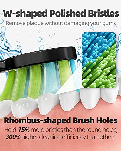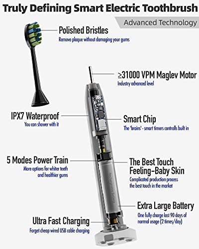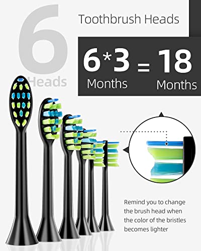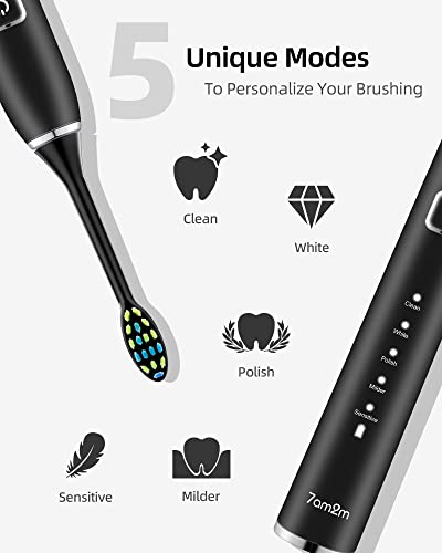 7AM2M Sonic Electric Toothbrush with 6 Brush Heads for Adults and Kids, One Charge for 90 Days, Wireless Fast Charge, 5 Modes with 2 Minutes Build in Smart Timer, Electric Toothbrushes(Black)
