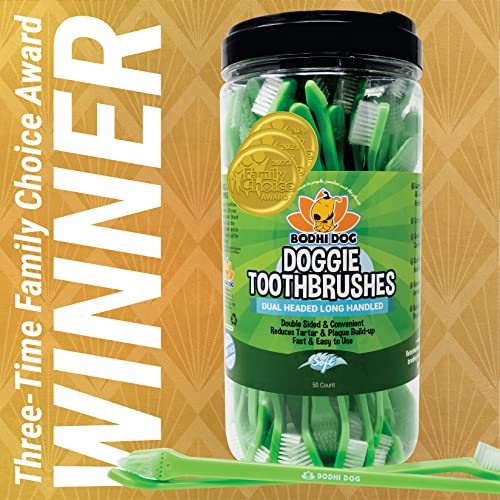 Bodhi Dog Dual-Headed Long Dog & Cat Toothbrush | Puppy Toothbrush with Soft Bristles for Pet Dental Care | Easy Teeth Cleaning Dog Finger Toothbrush, 50 Count