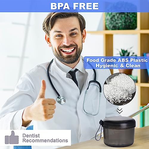 • PREMIUM MATERIAL - Most of the other denture bath cups are made of cheap PP plastic, which is smelly and fragile clean. Our denture bath cup is made of premium ABS Plastic and food-grade silicone, which ensures that our denture bath cups are environmentally friendly, non-toxic, scratch-resistant, odor-free, and BPA-free. You can even put this false teeth soaking container in boiling water for disinfection.