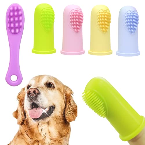 Dog Toothbrush Finger Toothbrush Set (4 Pack, with Dog Eye tears Black Chin Cleaning Tool) , Silicone Toothbrush,Soft bristles, Easy to Clean Teeth, Suitable for Dogs, Cats and Pets to use