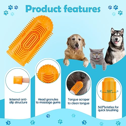 Dog Toothbrush + Storage Box + 2 Gloves - 360º Dog Tooth Brushing Kit - 100% BPA-Free - 3/4" in Diameter Opening - Soft and Elastic - Ideal for Pups, Kittens, and Petite Pets