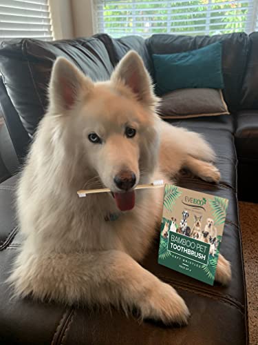 EveEco 4-Pack Bamboo Dog & Pet Toothbrushes - 2 Brush Heads Large & Small with Extra Long 8.5" Use with Toothpaste to Eliminate Cavities, Bad Breath, Tartar for Puppies, Cats, Kittens