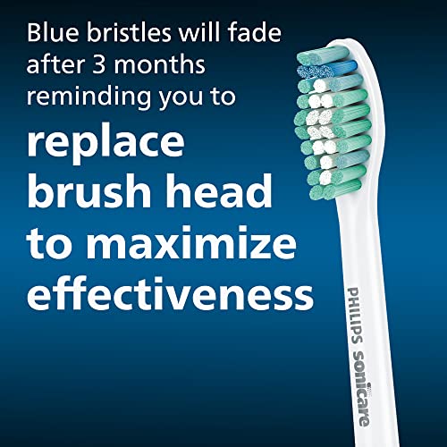 Details: Product Description Maintaining good oral health is easy with the Philips Sonicare e-Series Standard toothbrush heads. These screw-on replacement brush heads remove up to 2x more plaque vs. a manual toothbrush. e-Series also features an angled neck and contoured bristles to help you easily maneuver the brush and focus on hard-to-reach areas where plaque can hide. The blue reminder bristles fade to let you know when it's time for replacement. Replace your brush head every 3 months as recommended by the American Dental Association. A fresh brush head every 3 months maximizes the effectiveness of Philips’ unique Sonicare technology. Subscribe & Save on genuine Philips Sonicare brush head replacements and save up to 15%. From the Manufacturer > Manufacturer Contact Information >