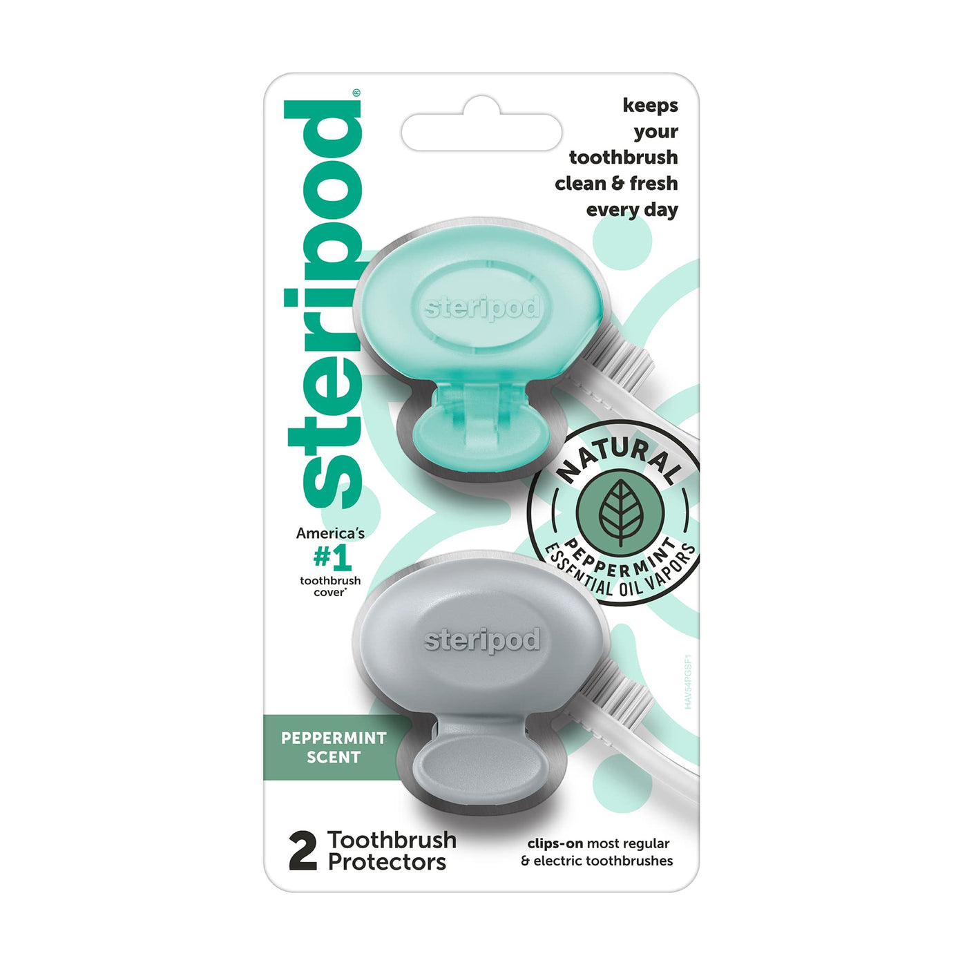 Steripod Clip-On Toothbrush Protector with Peppermint Essential Oils, Keeps Toothbrush Fresh and Clean, Travel Accessories, Fits Most Manual and Electric Toothbrushes, 2 Count