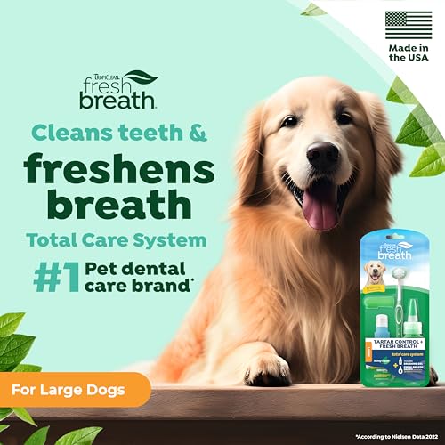 • PRODUCT: TropiClean Fresh Breath Dog Oral Care Kit for Large Dogs | Total Care System for Plaque & Tartar Control | Dog Tooth Brushing Kit for Large Dogs