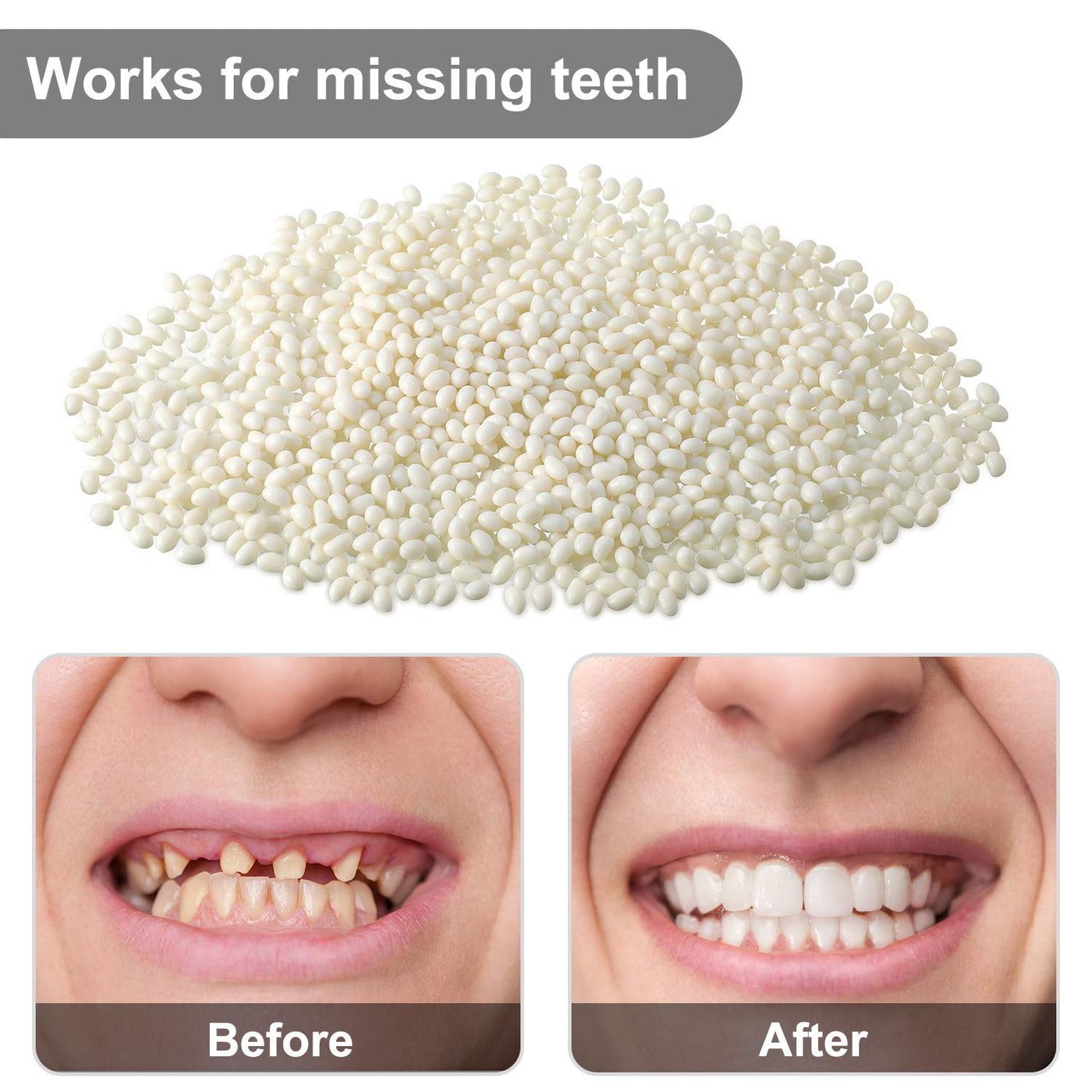 Details: Tooth solid gel teeth pellets adhesive for Halloween makeup scary themed party makeup filling fix the missing and broken tooth Feature: Convenient for makeup and cosplay: These tooth solid gels allow you to wear your vampire teeth with ease, safe and won't damage your teeth, they will modify your makeup or cosplay to be more natural, good for applying on Halloween, cosplay, costume, masquerade party and more. Practical tools: These teeth pellets adhesives can help to cover irregular, stained, missing and broken teeth, simple and safe to use, just a few minutes and your teeth will get a pretty repairing effect. Specifications: Weight: 100 g Color: white Package include: 100 g Teeth solid glue Warm notice: Please do not drink hot drinks when wearing the teeth solid glue. Please be careful not to be scalded when making the teeth solid glue. Small and inedible items, please keep this product away from children.