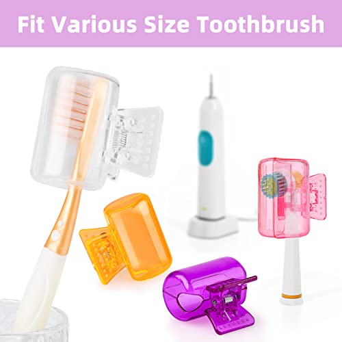 4 Pack Travel Toothbrush Head Covers Toothbrush Protector Cap Brush Pod Case Protective Portable Plastic Clip for Household Travel, Camping, Bathroom, School, Business (Clear, Orange, Purple, Pink)