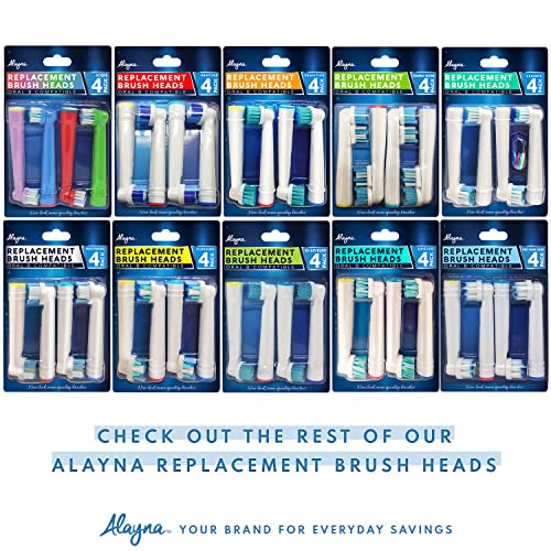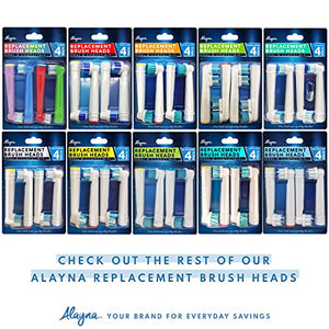Details: We each have different needs and tastes, and each day brings along new experiences. That's why Alayna created this OralB Braun compatible replacement brush head set- where you're sure to find the brush head you'll love. When you're looking for a deep interdental clean, reach for the Oral b Braun compatible generic Floss Motion Action brush head. The electric toothbrush replacement head will provide a floss like clean and promotes gum health with specialized MicroPulse bristles. For a thorough, fresh feel, go for the Precision - you'll almost feel like you're sitting in the dentist's chair! This brush head offers the comfort and convenience of the familiar brushing motion as a manual brush but removes much more plaque! The Sensitive Care compatible brush heads are soft and gentle on the teeth and gums without compromising on the teeth clean. Finally, the Cross Motion generic brush head provides outstanding tooth by tooth coverage, with various bristle levels at different angles which reaches and removes more plaque. Compatible with the following Oral B Braun models: Oral B Vitality Precision Clean (All Models) Oral B Vitality Dual Clean (All models) Oral B Professional Care (All models) Oral B Professional Care SmartSeries (All models) Oral B TriZone (All models) Oral B Advance Power (All models) Oral B Pro Health (All models) Oral B Triumph (All models) Oral B 3D Excel (All models) Oral B Plak Control 3D | Duo | Travel Oral B Triumph Professional Care (All models) Oral B Triumph (All models) Oral B Sensitive Clean (All models) Oral B White Clean (All models) Oral B Interclean (All models) Oral B Pro-Health (All models) ★Does Not Fit Oral-B Sonic Toothbrushes and Battery powered toothbrushes that require ONE AA battery to operate.★