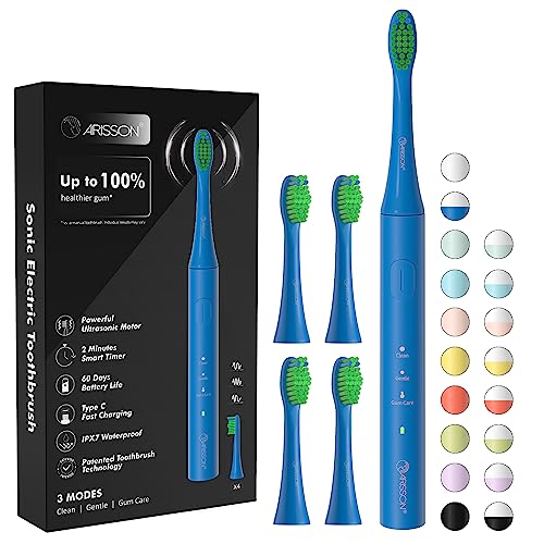 • PRODUCT: ARISSON Sonic Electric Toothbrush for Adults and Kids, 40,000 VPM Power Toothbrush, 1.5H Fast Charge Ultrasonic Electric Toothbrushes with 2 Minutes Smart Timer, 1.6 Oz Travel Toothbrush, Azure Blue