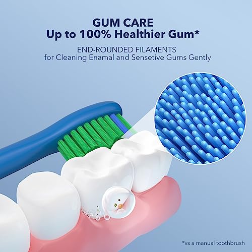 • 【"W" shape design & 4 DuPont Brush Heads】--- More comprehensive and gentle cleaning experience --- [1] Unique "W" shape design to suit teeth surfaces and remove up to 100% more stains from hard-to-reach spots, minimize the risk of damage to gums and tooth enamel. [2] Comes with 4 replacement toothbrush heads. Each brush head lasts 3 months so 4 heads will last for around one year.【NOTICE: Blue indicator bristles fade in color to let you know when it's time to replace the brush head】