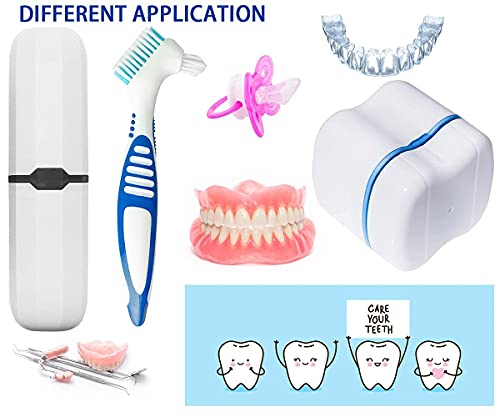 • PRODUCT: Denture Bath Cases with Denture Cleaner Brushes Denture Cups Denture Boxes Bath Dentures Container with Basket Denture Holder Denture Brush Retainer Case for Travel Retainer Cleaning (Blue)