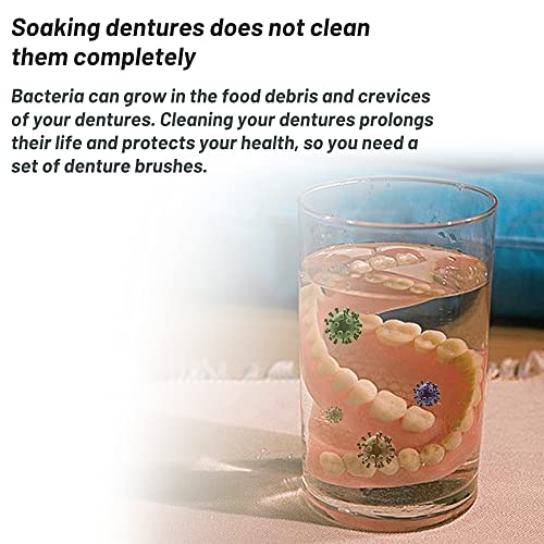 • ✔ Perfect Design: Double head design, can fully clean dentures. Excellent convenience, Contured grip makes them easy to hold with wet hands, Bent head makes it easy to clean. the toothbrush handle of our denture cleaning brush is in perfect size, provides firm grip, and reliably reaches all parts of the denture.