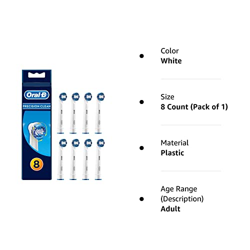 Details: The Oral-B Precision Clean bristles reach deep between teeth and cover more surface, leaving your whole mouth cleaner than a regular manual and power away up to 100 per cent more plaque for an enhanced clean vs. a regular manual toothbrush. Compatible with Oral-B Genius 8000, 9000. Compatible with Oral-B PRO 600, 650, 1000, 2000, 2500, 3000, 4000, 4900, 5000, 6000, 6500, 7000. Compatible with all Oral-B Vitality and Vitality Plus variants. Each order comes with 8x Oral-B Precision Clean Electric Replacement Toothbrush Heads.