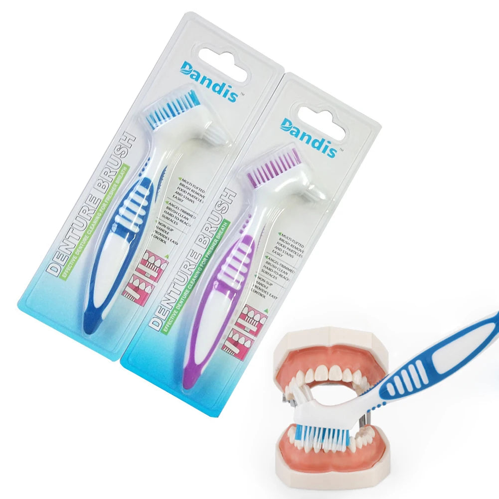 Ensure a fresh and clean smile with the Portable Denture Brush, a must-have oral care tool for those with false teeth or dental braces. Featuring a double-sided design, this brush allows for a deep and thorough clean—one side tackles larger surfaces, while the other reaches intricate areas for detailed cleaning.