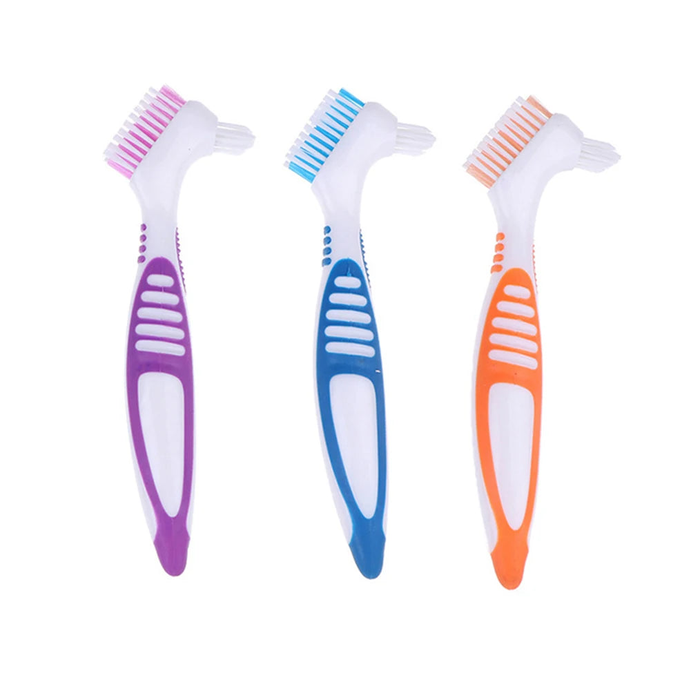 Portable Denture Brush Double-Sided False Teeth Cleaning Brush Multi-Layered Soft Bristle Dental Brace Toothbrush Oral Care Tool